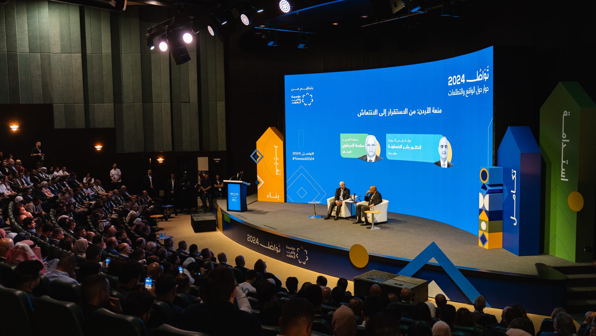 شارك رئيس الوزراء الدكتور بشر الخصاونة، في الجلسة الافتتاحَية الحوارية لمنتدى تواصل 2024 الذي تنظمه مؤسسة ولي العهد، برعاية سمو الأمير الحسين بن عبدالله الثَّاني ولي العهد، حول “منعة الأردن : من الاستقرار إلى الانتعاش”.